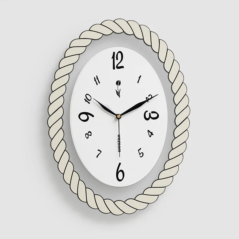 Oval Silent Wall Clock – Rope Frame (Non-Ticking)