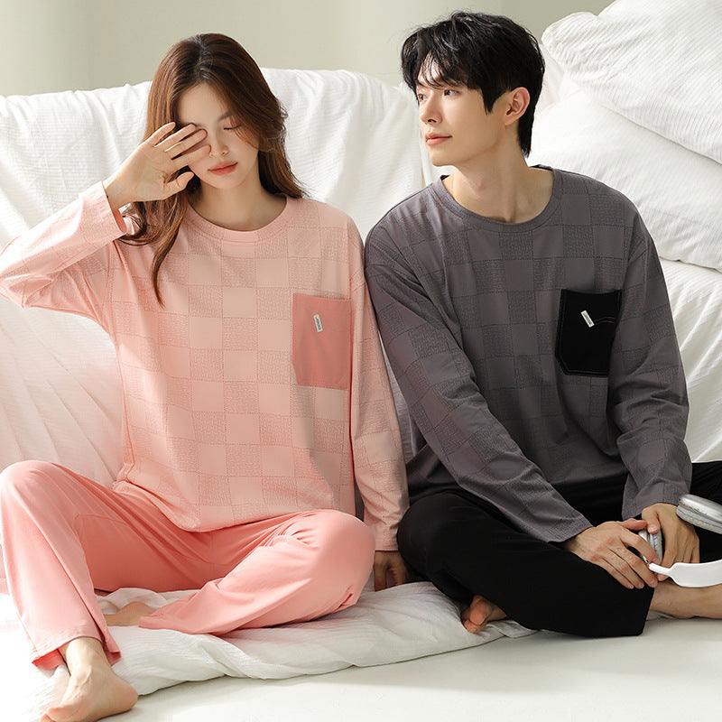 Round Neck Couples Pajamas Set - Cozy Comfort, Timeless Style