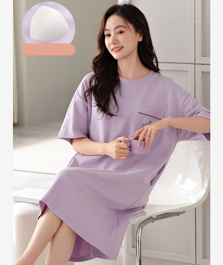 Ready to embrace summer comfort and effortless support? Click here to make the Short Sleeve Sleepwear with Bra Pads Cotton Summer yours today and experience the breezy difference!