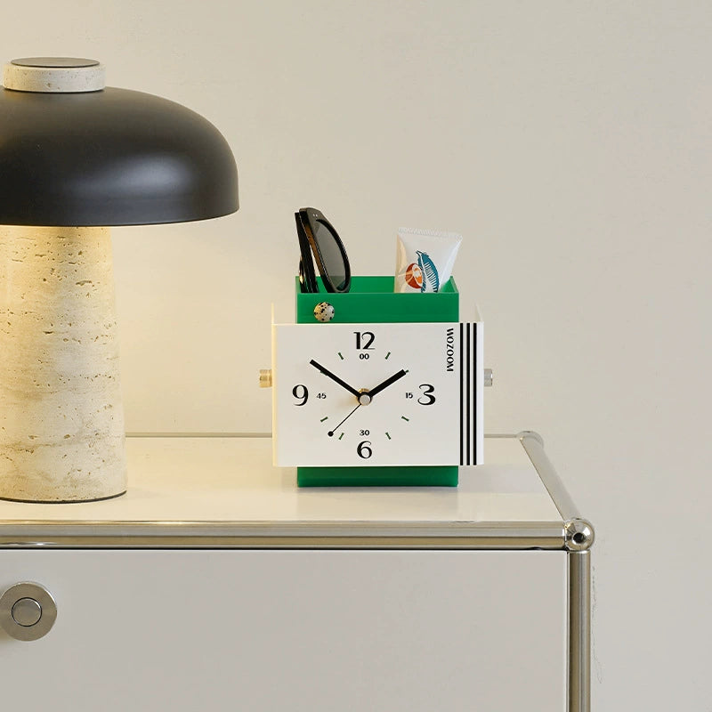 Organize your workspace with artistic precision using this Silent Acrylic Desk Clock with Integrated Storage. Blending modern creative aesthetics with everyday functionality, it offers the whisper-quiet performance of a high-end silent wall clock in a compact, tabletop form. Its unique dual-function design features a vibrant storage compartment and a natural stone base, making it a sophisticated accent for home offices, study desks, or bedside tables.