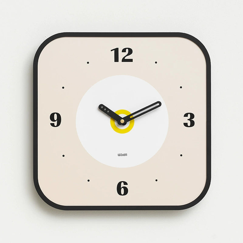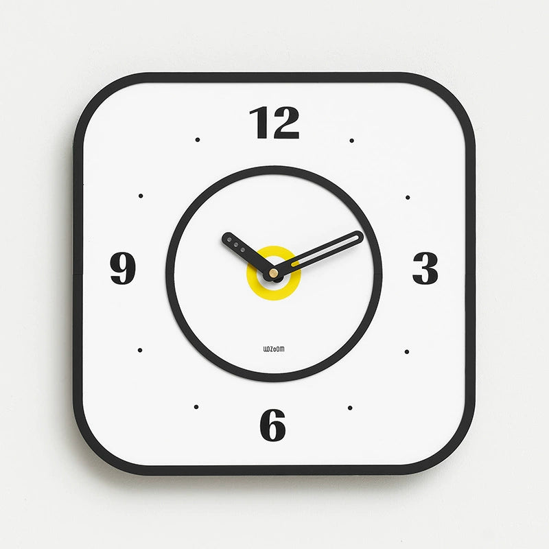 - Contemporary design with a bright yellow center, black border, and large readable numbers.