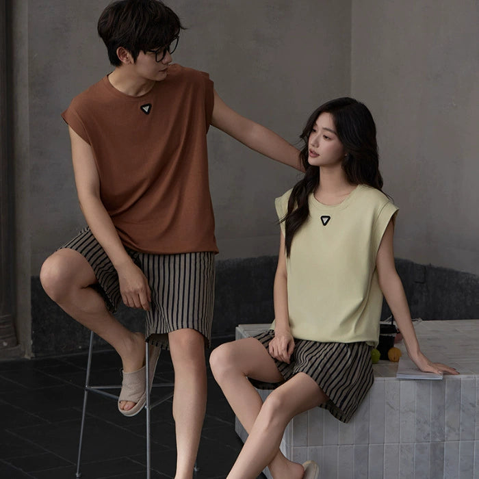 Silky Comfort: Sleeveless Modal Blend Couple Pajamas