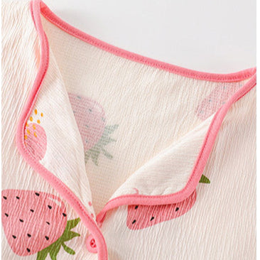 Indulge in sweet dreams and unparalleled comfort. Order your Strawberry Pattern Button-Front Pajamas Set, 100% Organic Cotton today!