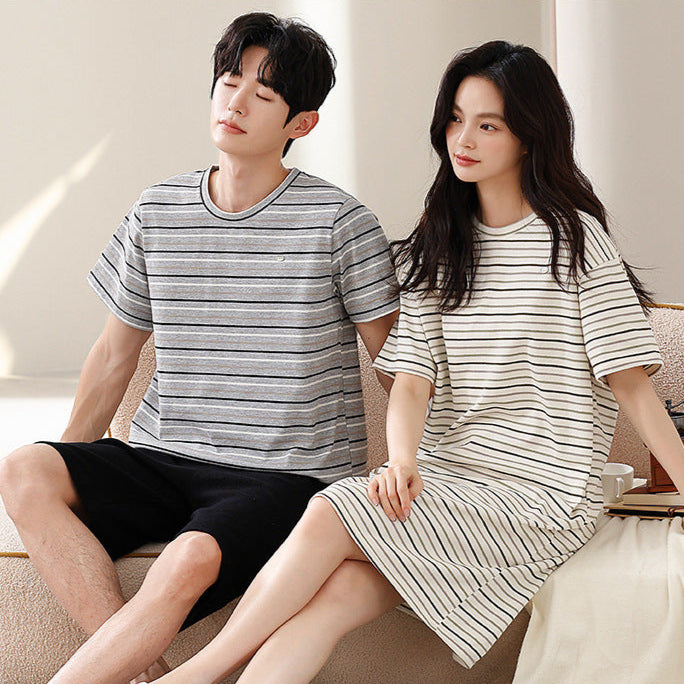 Imagine balmy summer nights and peaceful mornings, made even more comfortable by slipping into the softest striped sleepwear with your loved one. Our Matching Striped Organic Cotton Sleepwear Set is designed for those tranquil moments of summer togetherness. Crafted from 100% Organic Cotton, these matching pajamas offer a soft and breathable touch in a minimalist striped pattern that feels wonderfully gentle against the skin. Perfect for warm nights at home or leisurely summer days, this set is the essence of breezy summer comfort for you and your partner.