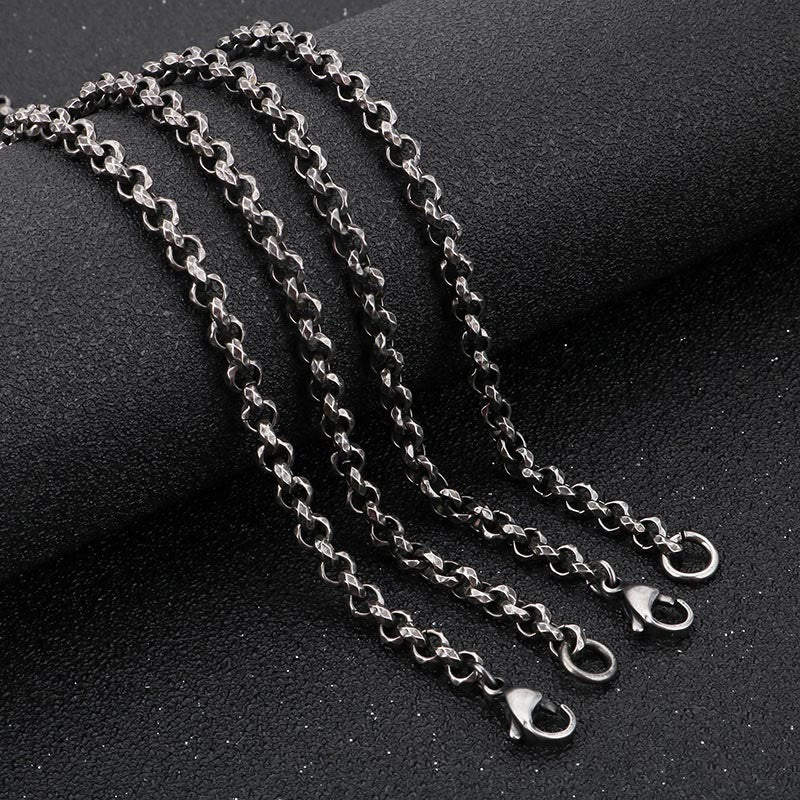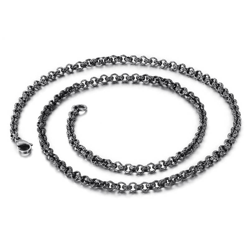 This anti-rust and anti-allergic highest quality stainless steel men's rolo belcher chain necklace features 5mm thickness and 65cm length for a chain and is available in an elegant black and vintage silver tone. It will be shipped in an exquisite gift box and a gift card which makes it a perfect birthday, anniversary, valentines or christmas gift for men.
