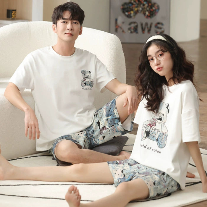 Teddy Bear Couple PJs - Matching Cotton Summer Set