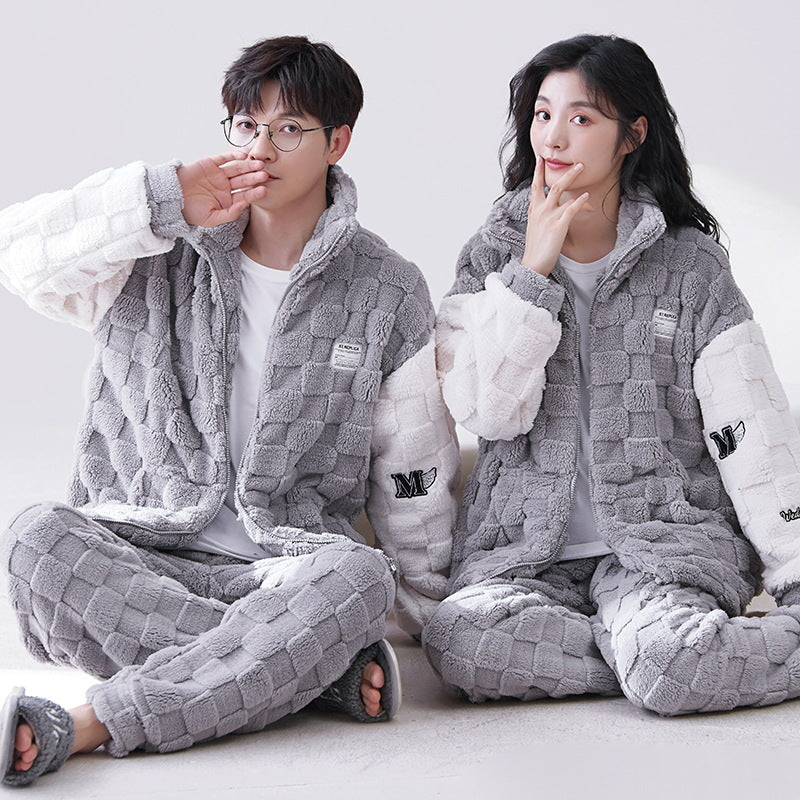 Thickened Flannel 4-Piece Couples Pajamas Set