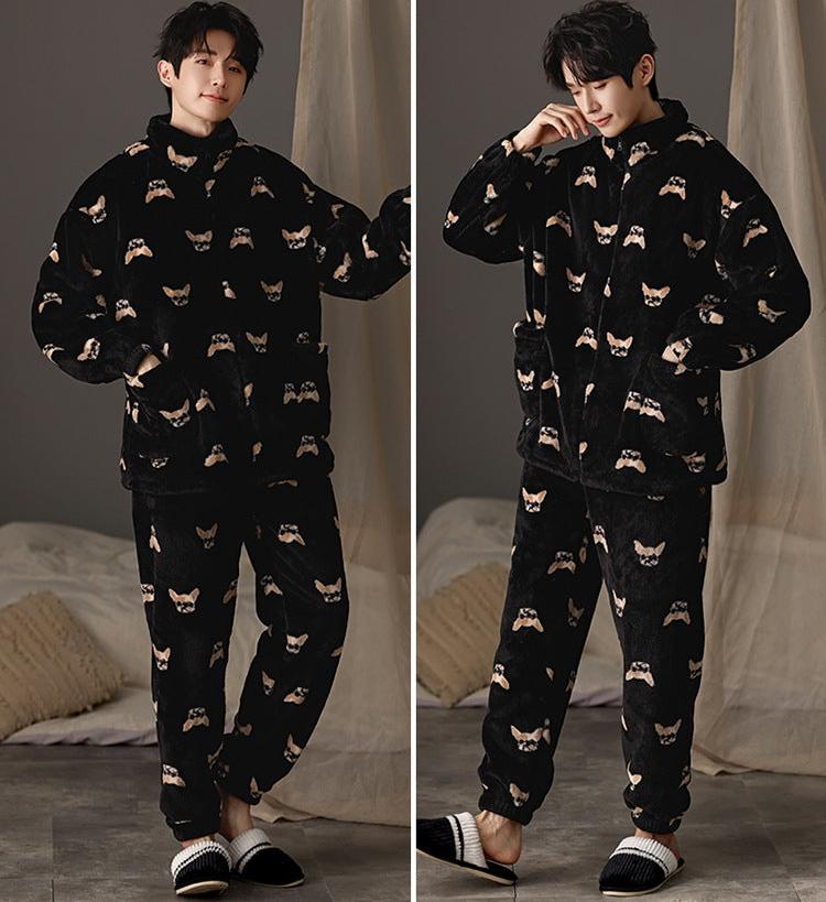 Thickened Flannel Couples Chihuahua Pajamas Set