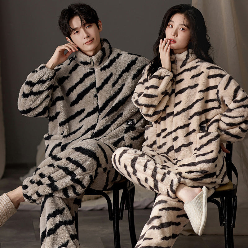 Indulge in ultimate warmth and comfort with our Thickened Flannel Couples Winter Pajama Set. Crafted from premium thickened flannel, these soft and cozy pajamas are perfect for the coldest winter nights. The loose fit, long sleeves, and plush fabric provide maximum warmth, making them ideal for snuggling up on the couch or staying warm in bed.