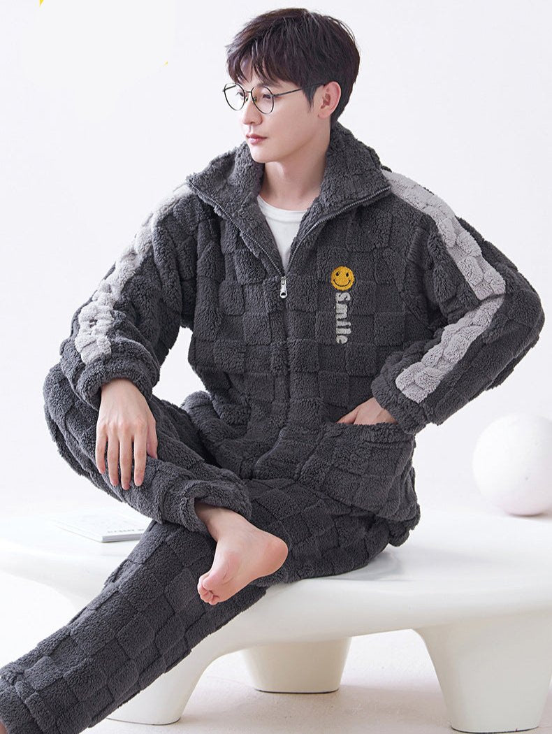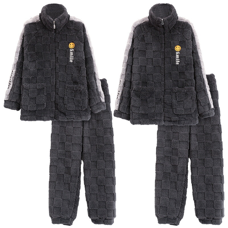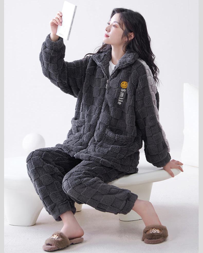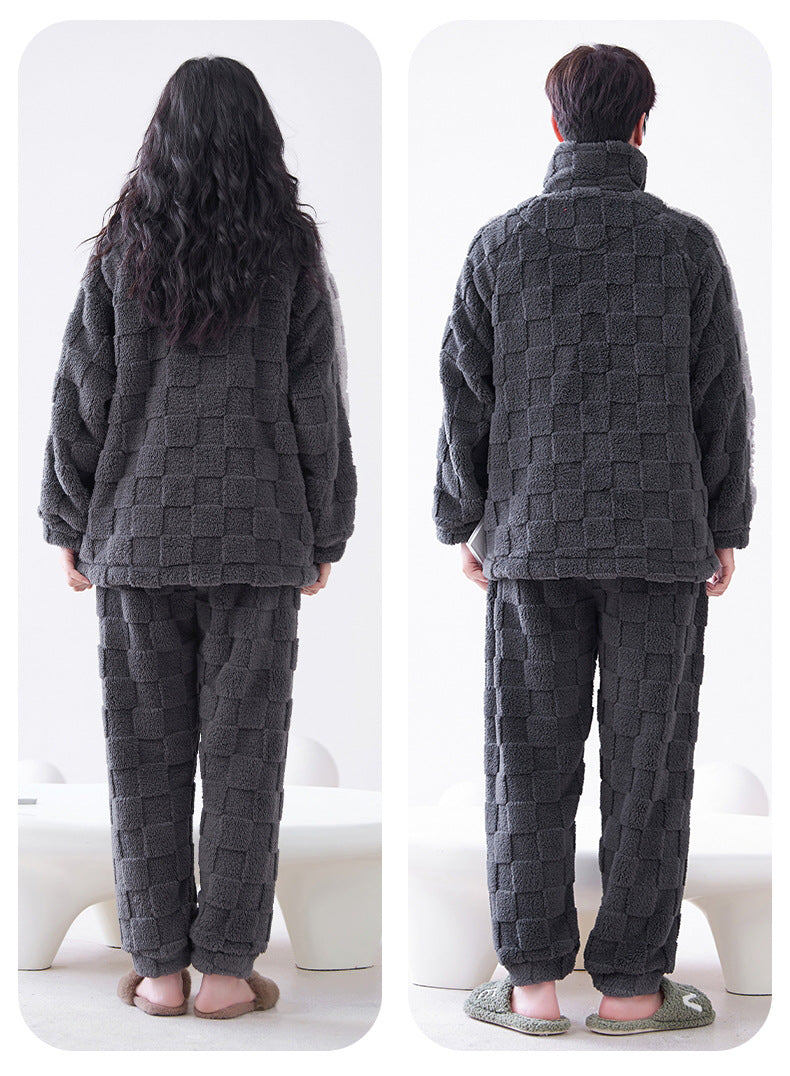 Thickened Flannel Zip-up Matching Pajamas Set for Couples