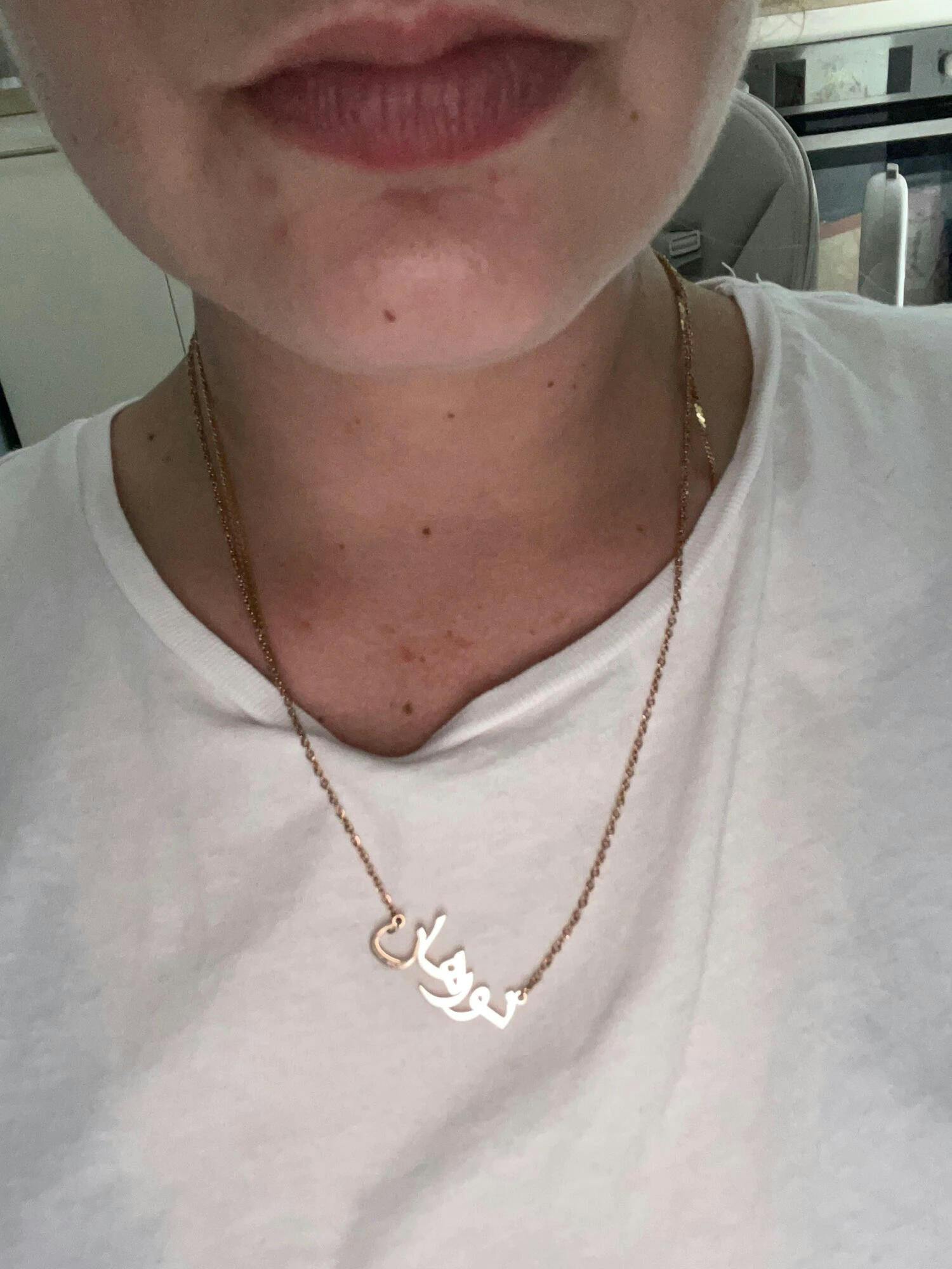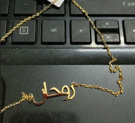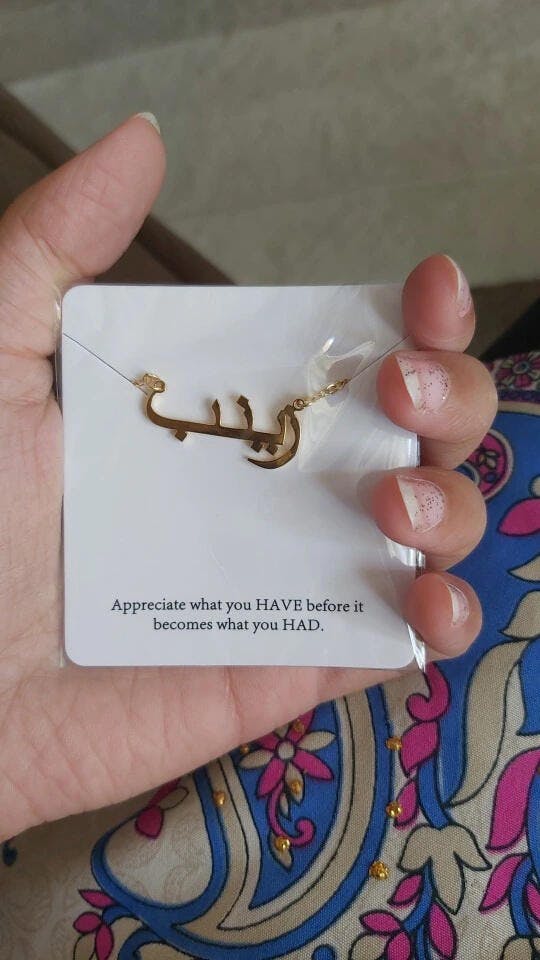 This Urdu or Arabic Custom Name Necklace for Her offers dazzling 18K Gold Plated Sterling Silver that never fades or causes allergies. For a truly special Christmas, Valentines, Wedding Anniversary, or Birthday gift, it arrives with an exquisite Jewelry Gift Box, a Jewelry Cleaning Cloth, and a Gift Card!