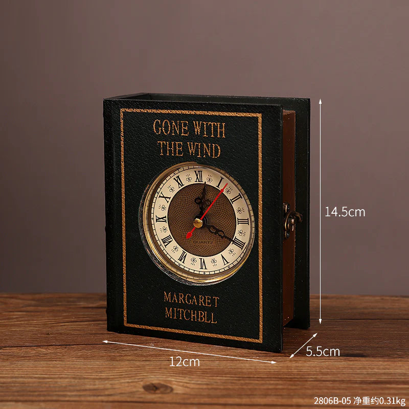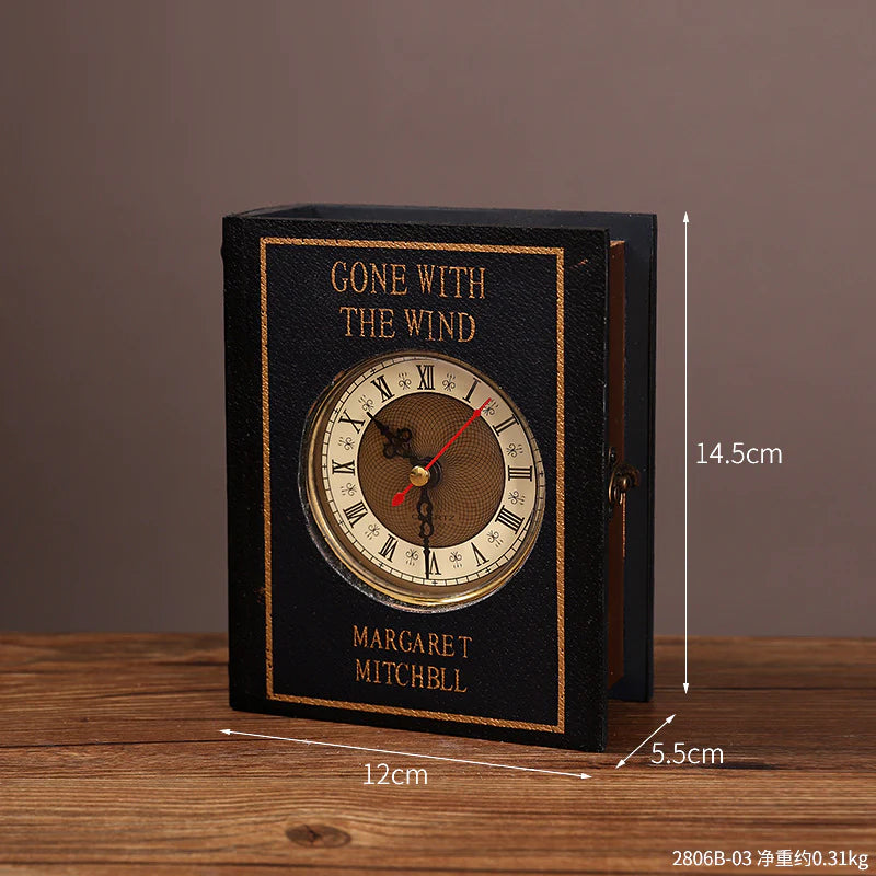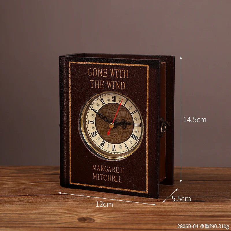 A nostalgic book-shaped clock that doubles as discreet storage. Enjoy quiet, non-ticking timekeeping and a clever compartment for jewelry, keys, or keepsakes.