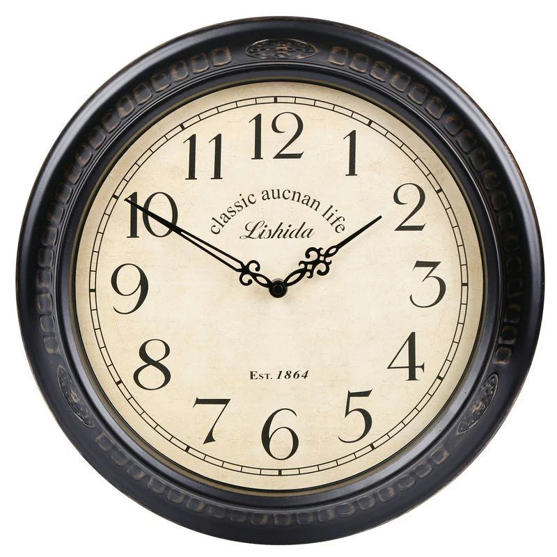 Vintage Silent Wall Clock – 15" Roman/Arabic (Non-Ticking)