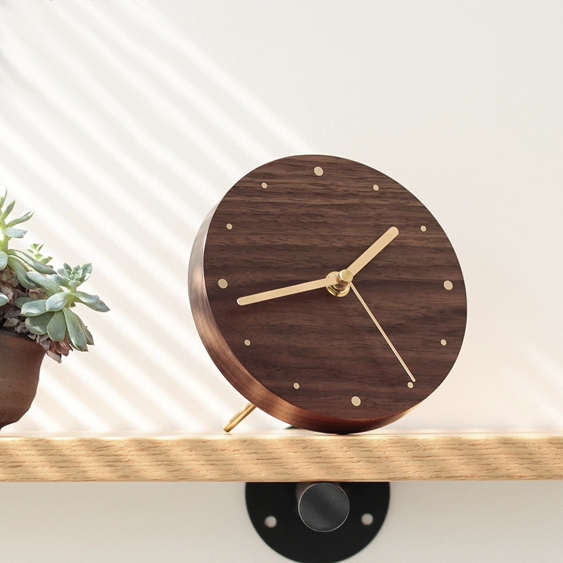 Bring calm, modern warmth to your workspace. This compact solid walnut desk clock features a smooth, sculpted body with brass-tone hands and a silent sweep mechanism—no ticking—ideal for home offices, studies and shelves.