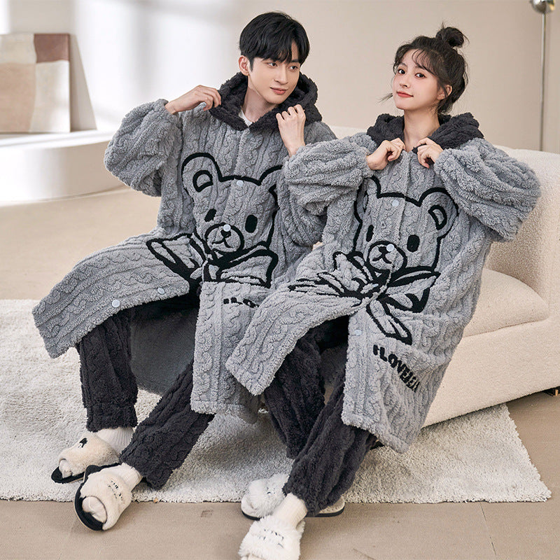 Indulge in ultimate warmth and cuteness with our Winter Bear Design Pajamas. Crafted from premium thickened coral flannel, these soft and cozy pajamas are perfect for the coldest winter nights. The loose fit, long sleeves, and plush fabric provide maximum warmth, making them ideal for snuggling up on the couch or staying warm in bed.
