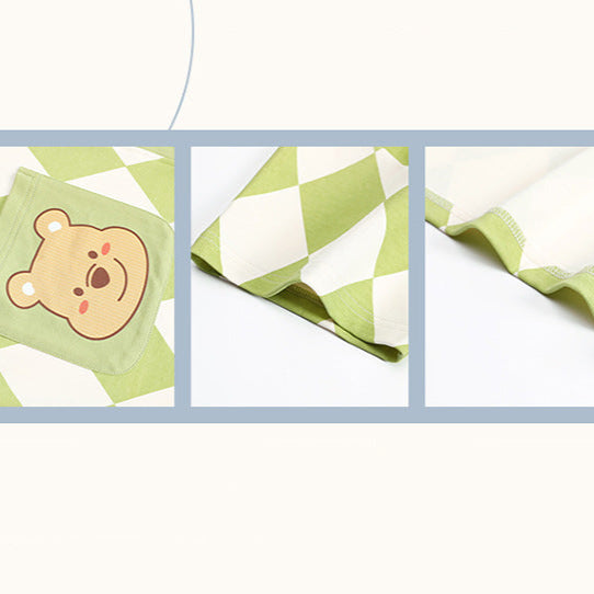 A: They are designed to be a perfect complement. Her eye-catching diamond print is balanced by his classic solid green, while the shared "Yellow Bear" patch on both tops creates a charming, cohesive link between the two unique styles.