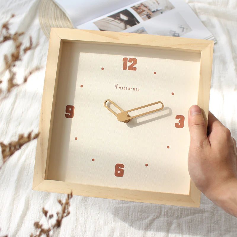 Bring calm, natural warmth to your space. This solid wood square clock pairs a clean cream dial and sculpted hands with a silent sweep mechanism that moves smoothly—no ticking—perfect for living rooms, studies, shelves and dining areas.